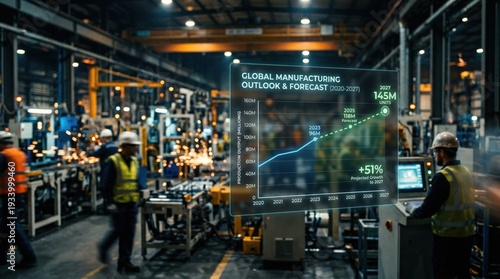 2027, forecast, manufacturing, global, industry, factory, production, outlook, dashboard, chart, graph, growth, trend, projection, strategy, planning, performance, operation, management, automation, robotic, engineering, process, productivity, optimization, efficiency, quality, datum, report, monitoring, control, system, technology, innovation, digital, industrial, machinery, equipment, men at work, team, safety, hard hat, plant, assembly, logistic