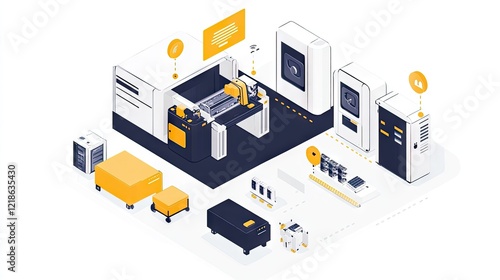 Industrial IoT setup with data overlay monitoring machinery and workflows.