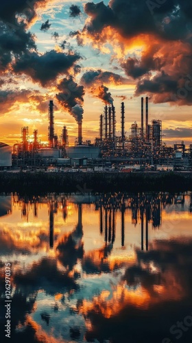 industry, sunset, sky, cloud, smoke, factory, water, plant, environment, pollution, energy, manufacturing, machinery, silhouette, landscape, nature, dusk, evening, beauty, technology, capitalism, economy, structure, production, power, skyline, scene, tranquil, dramatic, atmospheric, light, colours, horizon, industrialization, storage, storage tank, foreground, contrast, scenic, vapour, aesthetic, rural, chemical, oil, refinery, visual