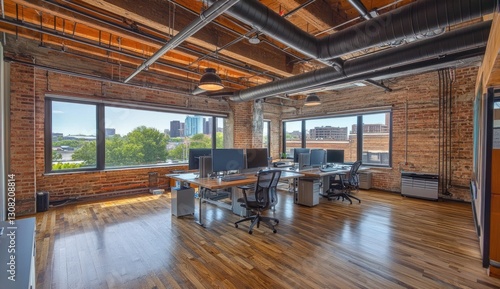 office, loft, city, view, workspace, interior, design, modern, urban, industrial, work, space, desk, computer, chair, window, brick, wood, open, bright, daylight, business, architecture, interior design, contemporary, industrial design, furnished, professional, creative, company, collaboration, productivity, entrepreneur, startup, innovative, successful, leadership, technology, teamwork, development, growth, workstation, executive, success, professionalism