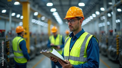 factory, men at work, inspection, safety-gear, industrial, machinery, equipment, clipboard, men at work, construction, engineer, industry, helmet, work, safety, warehouse, working, architect, builder, hard hat, building, foreman, business, job, people, occupation, engineering