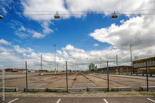 industry, factory, plant, unemployment, work, inactivity, idle, downturn, layoff, recession, crumbled, scenery, car park, nobody, empty, wire, fence, industrial, production, scene, urban, detail, outdoors, space, property, private, warehouse, daylight, day