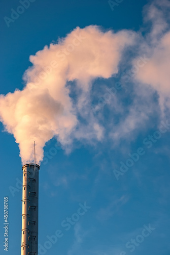 Industrial smoke from chimney on blue sky