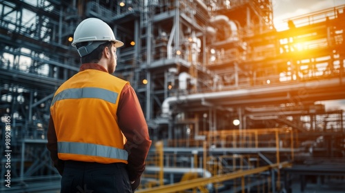industrial, men at work, hard, hat, equipment, sunset, factory, manufacturing, plant, machinery, infrastructure, energy, oil, gas, production, engineering, construction, industry, technology, workplace, manual, labor, safety, blue-collar, steel, metal, pipe, tube, structure, process, operation, inspection, maintenance, repair, exam, observation, silhouette, illumination, lighting, atmosphere