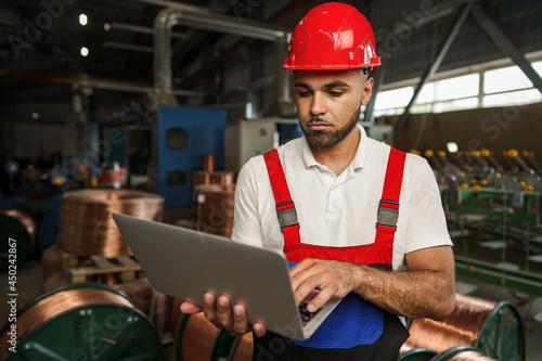 technology, computer, industry, manufacturing, industrial, laptop, building, men at work, factory, plant, engineer, workshop, man, engineering, production, male, equipment, safety, construction, metal, hard hat, person, notebook, machinery, helmet, people, work, power, adult, attractive, business, checking, compressor, concept, control, controlling, development, device, electrician, maintenance, manufacture, portrait, profession, uniform, working