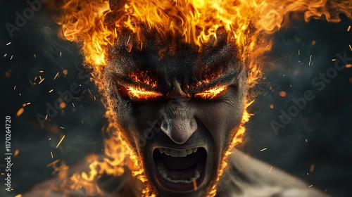 fire, flames, inferno, burning, head, face, man, anger, rage, scream, pain, suffering, crucified, heat, intense, emotion, expression, powerful, dramatic, dark, scarey, fear, hell, daemon, evil, wrath, fury, despair, misery, agony, human, portrait, fantasy, surreal, art, digital, artwork, graphic, design, abstract, concept, imagination, creative, photo, visual, effect