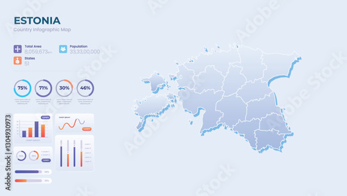 Infographic Map of Estonia. Total Area, Papulation, States & More Detailed Infographic Map of Estonia. Vector Illustration