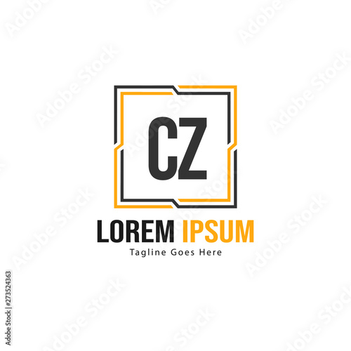 Initial CZ logo template with modern frame. Minimalist CZ letter logo vector illustration