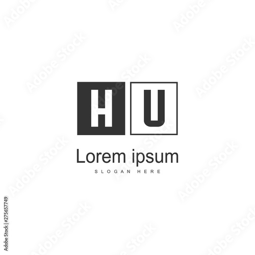 Initial HU logo template with modern frame. Minimalist HU letter logo vector illustration