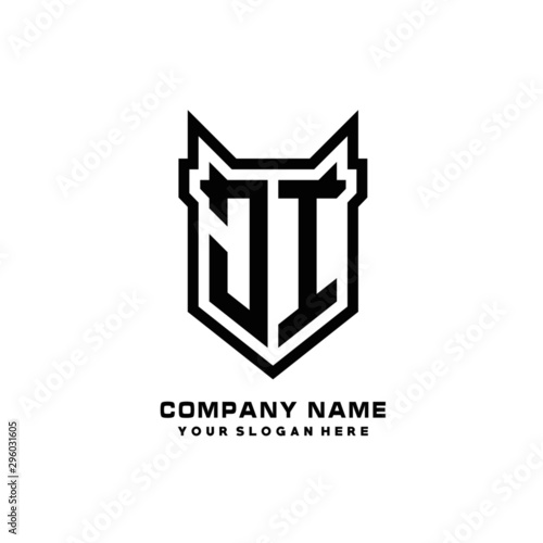 Initial letter JI Shield vector Logo Template Illustration Design, black color
