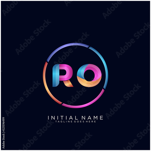 Initial letter RO curve rounded logo, gradient vibrant colorful glossy colors on black background