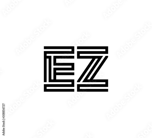 Initial two letter black line shape logo vector EZ