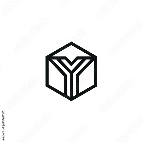 Initials Y VY YY Hexagon Logo Design with Minimalist Thin Line Arrow Template