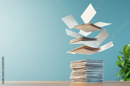 office, technology, document, levitation, workspace, modern, business, productivity, innovation, creative, design, organisation, paper, floating, digital, presentation, concept, visual, contemporary, minimalism, aesthetic, green plant, calm, professional, environment, future, efficient, communication, automation