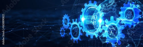 Inscription Customer journey on the virtual display. Business Technology Internet and network concept. 3d illustration