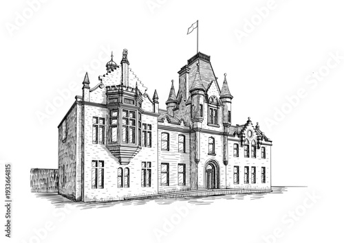 line art, vector, hand-drawn, monochrome, architecture, castle, tower, old, palace, cathedral, church, europa, brick, history, religion