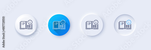 Instruction info line icon. Neumorphic, Blue gradient, 3d pin buttons. Technical information sign. Line icons. Neumorphic buttons with outline signs. Vector