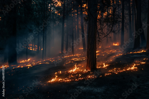 forest, fire, tree, burning, flames, blaze, wildfire, destruction, disaster, danger, heat, smoke, charred, ash, inferno, environmental, emergency, crisis, damage, conflagration, combustion, forestry, timberland, firestorm, devastation, ecology, ecological, urgent, catastrophy, ignition, firefighter, firefighting, generative, ai