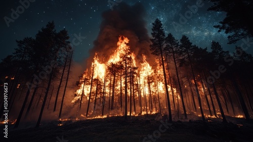 fire, forest, flames, night, tree, smoke, nature, disaster, burning, wilderness, landscape, bright, light, heat, environment, destruction, wildfire, population, wildlife, air, pollution, evacuation, emergency, danger, safety, sky, cloud, glow, dark, bark, flicker, risk, terrain, beauty, contrast, natural, biomass, energy, effect, scene, wild, glowing, blaze, night time, challenge, weather, crisis, response