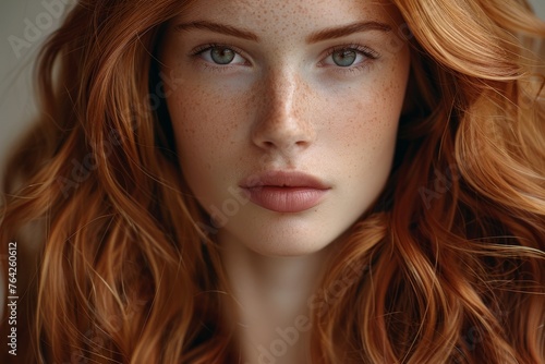 Intense intimate portrait of a woman with hypnotic green eyes and lush red hair