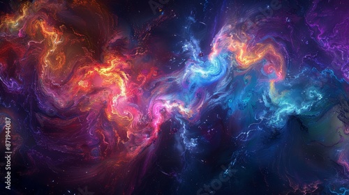 Intense mystical energy with vibrant colors, dark void background, swirling patterns, detailed and enchanting, ethereal and magical