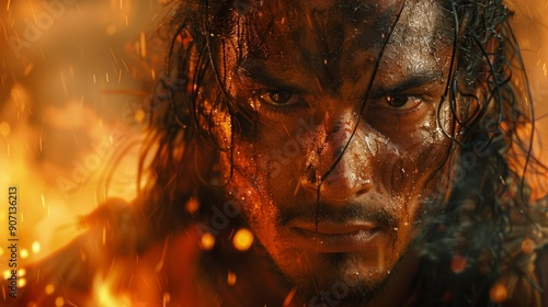 portrait, man, flames, intense, fire, warrior, dramatic, face, heat, battle, strength, fierce, survival, determination, gritty, hero, cinematic, action, sharpened, energy, glowing, powerful, dynamic, emotion, rugged, struggle, adrenalin, fight, darkness, challenge, masculine, aggressive, intensity, endurance, defiance, high-coloured, burning, passion, combat, realism, expression, power, statue, old, people, woman, sculpture, art, person