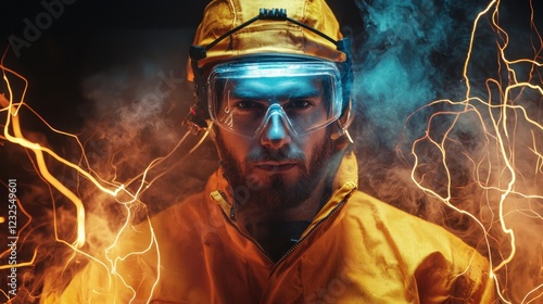 men at work, spark, safety, protection, electricity, energy, fire, technology, industrial, equipment, gear, danger, maintenance, engineering, action, concentration, sharpened, hazard, smoke, dramatic, background, lighting, flames, portrait, labor, industry, strength, power, intensity, professionalism, emergency, scene, fire resistant, uniform, construction, power-tool, manpower, experimentation, risk, adrenalin, tension, environment, atmosphere, isolation