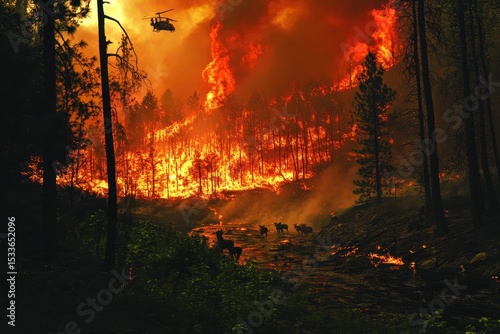 wildfire, fire, helicopter, forest, tree, smoke, animal, nature, landscape, emergency, disaster, rescue, environment, heat, flames, wildlife, scene, danger, sky, evening, river, ash, ecology, blaze, forest fire, vegetation, preservation, crisis, devastation, catastrophy, water, aerial view, firefighting, ecosystem, natural disaster, ladder company
