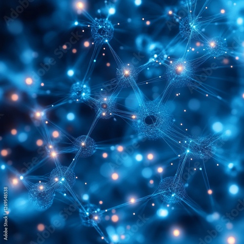 Interconnected digital network of glowing blue nodes and lines in abstract design