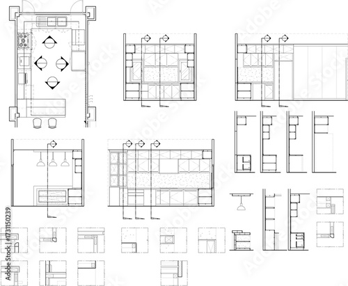 Interior Design Kitchen Drawing with Furniture Layout Plan and Elevation Design