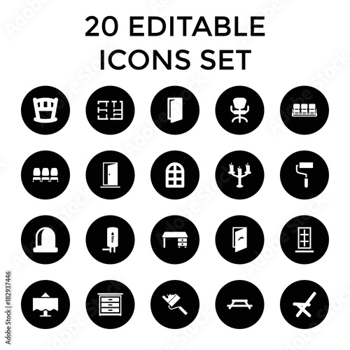interior, icon, window, door, chair, office, desk, roller, table, baby, bed, opened, plan, eatery, candleholder, geyser, nightstand, filled, set, vector, isolated, design, illustration, symbol, background, signs, white, home, silhouette, modern, object, graphic, black, furniture, style, decoration, work, room, architecture, business