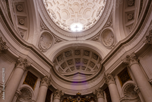 renaissance, baroque, decoration, ornament, opulence, stone, column, masonry, sculpture, architecture, history, art, painting, ceiling, italy, religion, basilica, vault, dome, fresco, historic, arch, detail, travel, entrance, ancient
