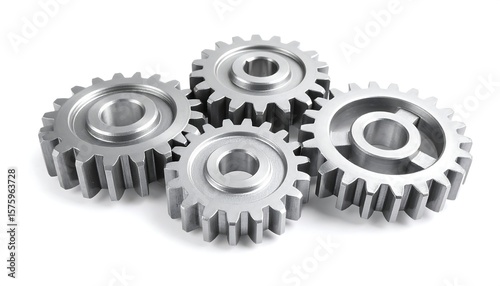 gear, interlocked, metal, industrial, mechanism, technology, engaged, precision, machinery, clockwork, rotating, connected, structure, system, drive, power, motion, assembled, part, solid, silver, metallic, three-dimensional, render, white, background