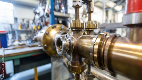 brass, metal, machinery, industrial, component, hardware, engineering, mechanical, equipment, precision, assembly, manufacture, technology, system, pipe, fitting, joint, connection, valva, gauge, part, structure, rig, apparatus, device, tool, bolt, screw, nut, thread, cylinder, tube, rod, lever, arm, mechanism, machine, workshop, factory, studio, laboratory, clean, shiny, gleaming, abstract, macro, detail