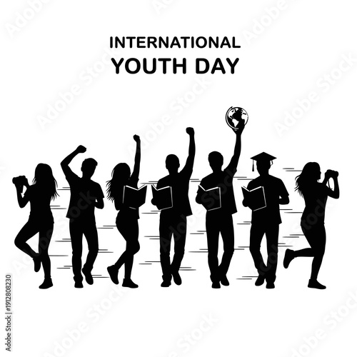International Youth Day Celebration Silhouette Vector Illustration with Global Unity Theme