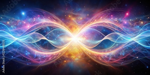 Interwoven psychic waves connecting two souls, mystical energy envelops the space between them, an ethereal bond forms, cosmic link, entwined essence