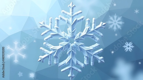 Intricate blue snowflake on a geometric backdrop. Winter design element, perfect for seasonal graphics and holiday themes.