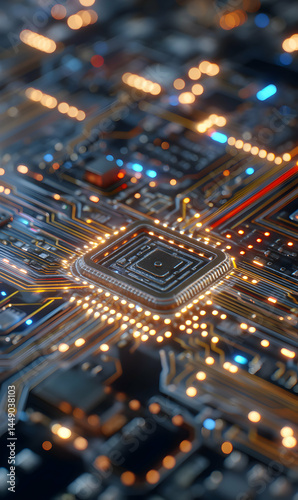 Intricate circuit board patterns showing connectivity and innovation in a tech focused world setting