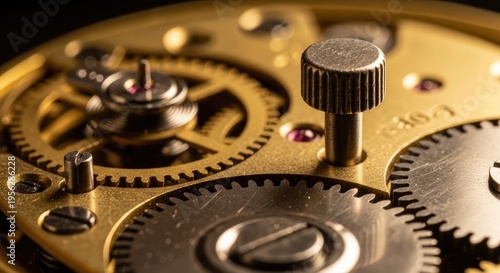 clock, watch, mechanism, gear, time, precision, engineering, metal, gold, silver, detailed, closeup, macro, vintage, antique, movement, cog, wheel, gear, component, assembly, structure, design, craftsmanship, technology, industrial, machinery, part, system, device, instrument, chronometer, horology, accuracy, complexity, texture, surface, pattern, shape, round, circular, metallic, shiny, bright, light, sharpened, depth, perspective, angle