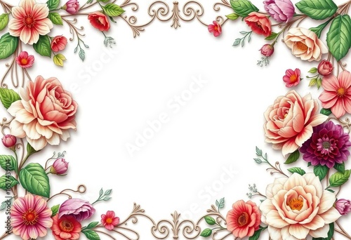 Intricate floral frame, perfect for scrapbooking and cards, botanical, album