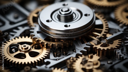 gear, mechanism, machine, clockwork, technology, engineering, precision, metal, cog, wheel, interlocking, component, hardware, industrial, machinery, mechanic, device, system, work, process, motion, movement, rotating, spinning, interconnected, complex, intricate, detail, closeup, macro, texture, gold, silver, grey, steel, chrome, brass, shiny, elegant, craftsmanship, design