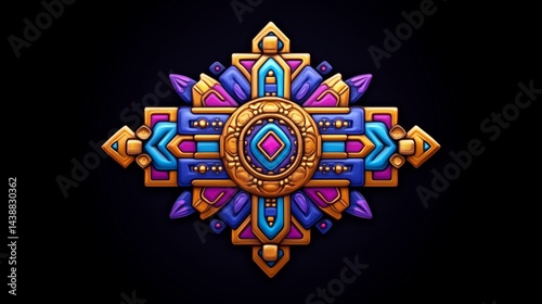 geometric, pattern, design, mandala, abstract, gold, purple, blue, turquoise, pixel, art, digital, illustration, texture, decorative, ornamental, symmetric, colourful, vibrant, intricate, detailed, mosaic, artwork, graphic, background, element, shape, ancient, aztec, maja, incan, tribal, cultural, ethnic, folk, craft, symbol, icon, logotype, template, wallpaper, seamless
