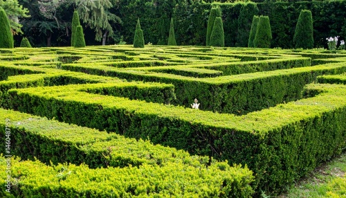 Intricate Green Hedge Maze in a Well-Manicured Garden Landscape