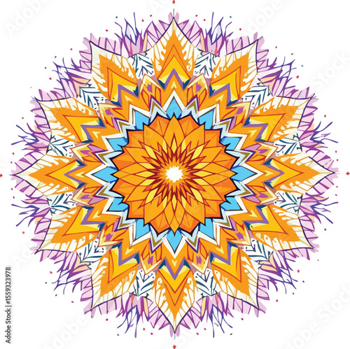 mandala, illustration, vector, design, pattern, ornament, floral, decorative, abstract, spiritual, meditation, yoga, art, graphic, circular, colourful, hand-drawn, orange, purple, watercolor, flower, bloom, symmetric, zen, wellness, decoration, symbol, circle, shape, winter, star, colours, element, icon, signs, snowflake, nature, sun, snow, christmas, leaf