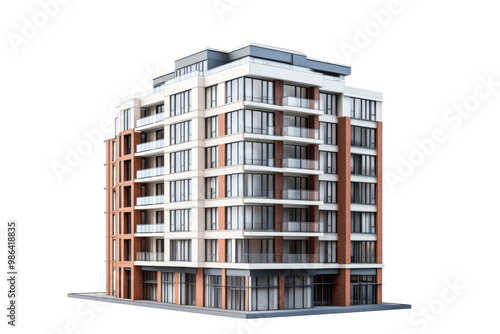 Intricate model of an urban apartment building with detailed facade features ,Isolated on transparent background.