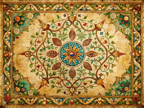 Intricate Ornamental Design on Vintage Paper with Natural Frame for Product Photography