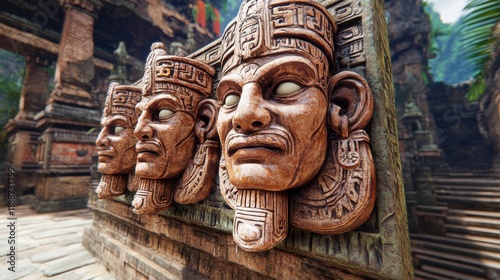 Intricate Stone Carvings of Ancient Heads with Unique Expressions