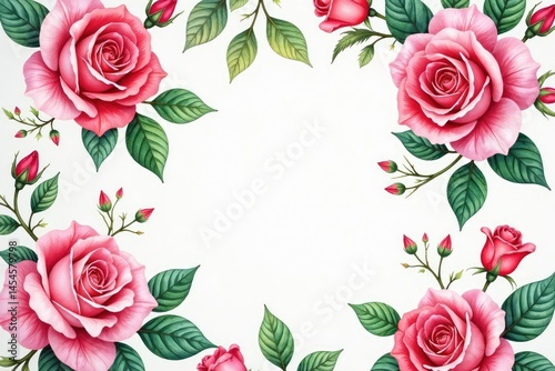 Intricate watercolor roses & leaves, repeating design, decorative, trendy, watercolor