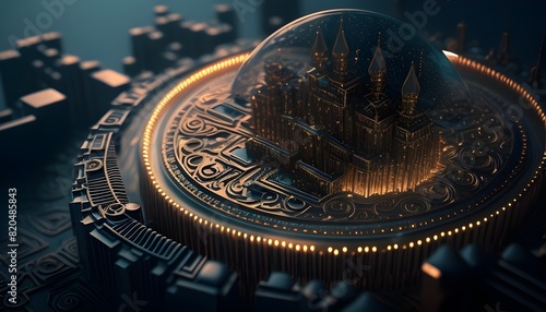 network, digital, currency, coin, abstract, geometric, pattern, metallic, texture, aesthetic, city landscape, futuristic, technology, finance, crypto, shimmering, gleaming, cinematic, visual, architecture, infrastructure, datum, code, matrix, virtual, reality, tech, modern, coding, neon, glow, shimmer, gleam, style, retro