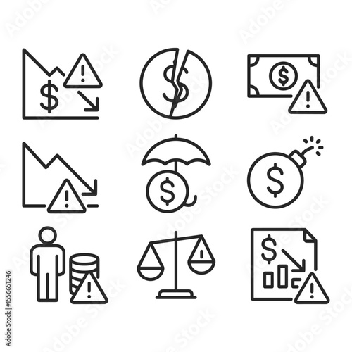 icon, financial, line, risk, money, investment, danger, warning, loss, profit, chart, graph, arrow, decayed, increase, market, stock, economy, business, finance, vector, signs, symbol, outline, black, linear, banking, crisis, recession, volatility, set, analysis, strategy, portfolio, asset, liability, debt, credit, loan, interest, rate, inflation, currency, exchange, trading, gambling